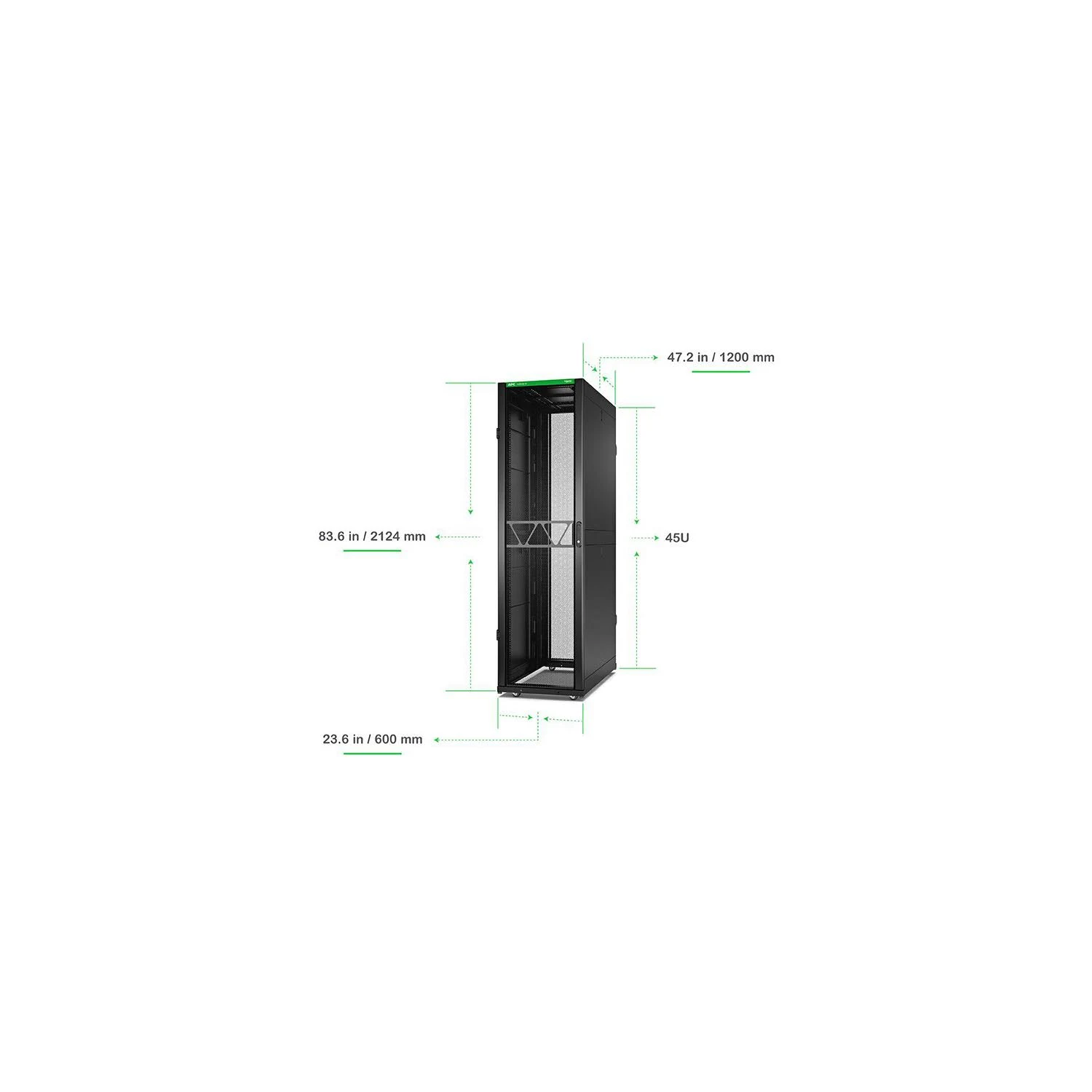 The NetShelter SX 45U offers a robust set of technical features designed for demanding IT environments. Its 45U height provides ample space for equipment, while the 600mm width and 1200mm depth accommodate even deep servers and networking devices. The high static and dynamic weight capacities ensure that the enclosure can handle heavy loads without compromising stability. Adjustable mounting rails allow for flexible equipment placement, and the integrated cable management system keeps cables organized and out of the way.